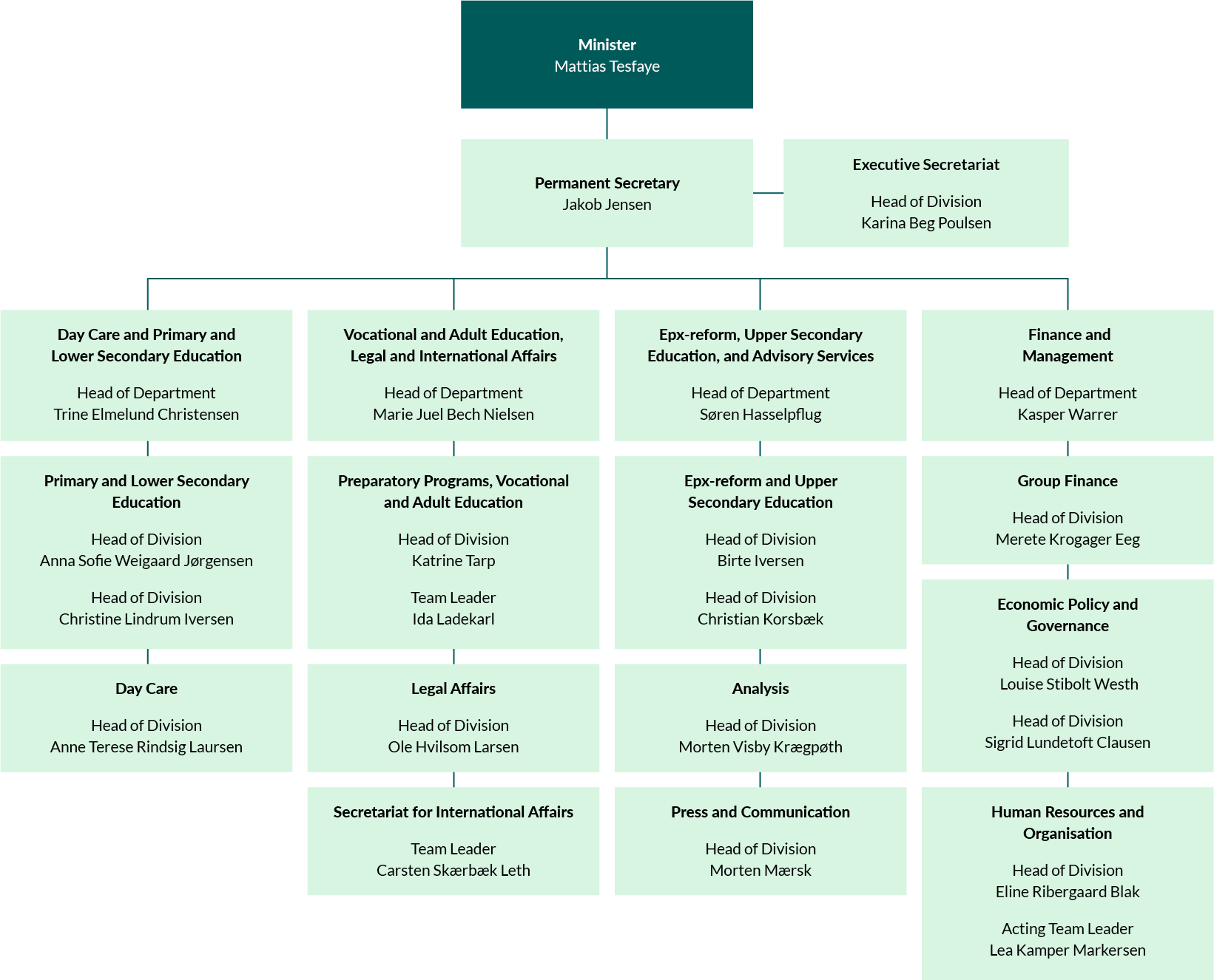 Get an overview on departments, divisions and secretariats.
